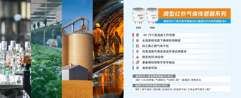 四方光電微型紅外二氧化碳傳感器SRH系列和微型紅外丙烷傳感器SBH系列均采用NDIR技術(shù),與熱催化和半導(dǎo)體技術(shù)相比不易受有害氣體影響,具有選擇性強(qiáng)、精度高、壽命長的優(yōu)勢(shì)??梢栽谌珳囟群蜐舛认麓_保檢測(cè)精度,響應(yīng)快,穩(wěn)定性好,能夠在曲房和發(fā)酵池復(fù)雜環(huán)境中應(yīng)用,滿足白酒釀造過程中對(duì)于CO2濃度和乙醇揮發(fā)濃度監(jiān)測(cè)的需求。