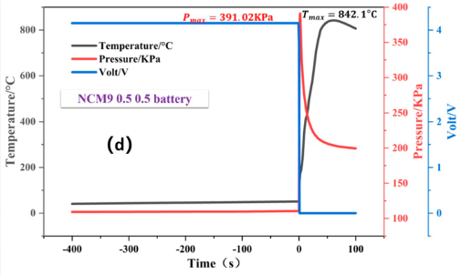 相比之下,三元鋰電池因高活性鎳鈷錳材料特性,熱失控觸發(fā)溫度低至150-200℃,反應(yīng)中釋放氫氣、一氧化碳、二氧化碳、甲烷及乙烯等氣體,并伴隨壓力驟升和顆粒物爆發(fā)?!度囯x子電池?zé)崾Э貧怏w原位分析》研究表明,三元鋰離子電池?zé)崾Э剡^(guò)程經(jīng)歷溫升、電解液蒸發(fā)、氣體釋放及壓力峰值檢測(cè)、冷卻后毒性氣體警示四個(gè)階段。需重點(diǎn)監(jiān)測(cè)電解液泄漏和多組分氣體,能更早發(fā)現(xiàn)異常,為響應(yīng)處置提供更多寶貴時(shí)間。