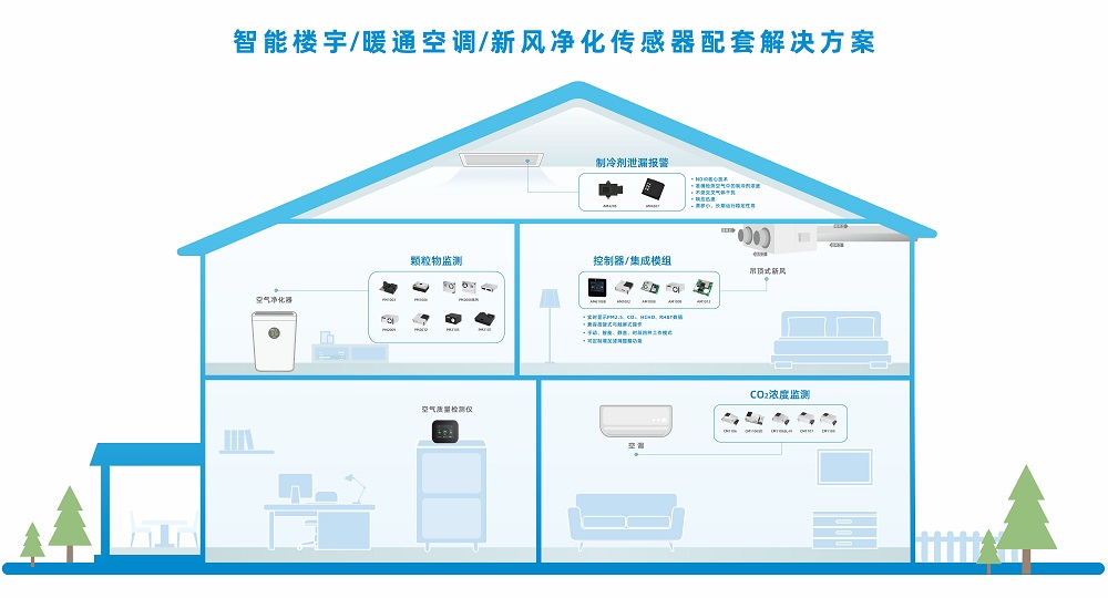 基于十余年紅外NDIR技術(shù)的研究與創(chuàng)新,以及國(guó)內(nèi)外多家智能家電廠家的傳感器配套經(jīng)驗(yàn),四方光電相繼推出了單通道紅外二氧化碳傳感器CM1106、雙通道二氧化碳傳感器CM1107、雙光源紅外二氧化碳傳感器CM1109,可以滿足設(shè)備在各種應(yīng)用工況下的使用需求;并針對(duì)新風(fēng)系統(tǒng)及空調(diào)配套,專門開發(fā)了一款二氧化碳傳感器CM1106SD,經(jīng)過長(zhǎng)期的市場(chǎng)沉淀,產(chǎn)品受到國(guó)內(nèi)外廣大客戶的認(rèn)可。還有激光型PM2.5傳感器、甲醛傳感器、VOC傳感器和新風(fēng)控制器等,可以根據(jù)客戶的差異化需求提供多種傳感器的集成方案。
