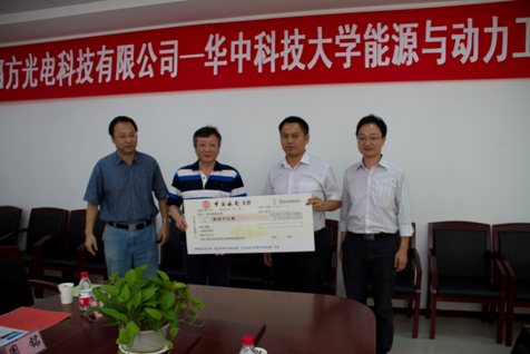 2012年9月29日上午,四方光電股份有限公司向華中科技大學(xué)能源與動(dòng)力工程學(xué)院捐贈(zèng)儀式在在學(xué)院動(dòng)力樓二樓會(huì)議室舉行。公司向能源與動(dòng)力工程學(xué)院捐贈(zèng)100萬(wàn)元,用于學(xué)院學(xué)生獎(jiǎng)學(xué)金、教師獎(jiǎng)教金。公司總經(jīng)理熊友輝、副總經(jīng)理蔣泰毅,華中科技大學(xué)能源學(xué)院院長(zhǎng)黃樹(shù)紅、黨總支書(shū)記陳剛出席了儀式。儀式由能源學(xué)院副院長(zhǎng)姚洪主持。