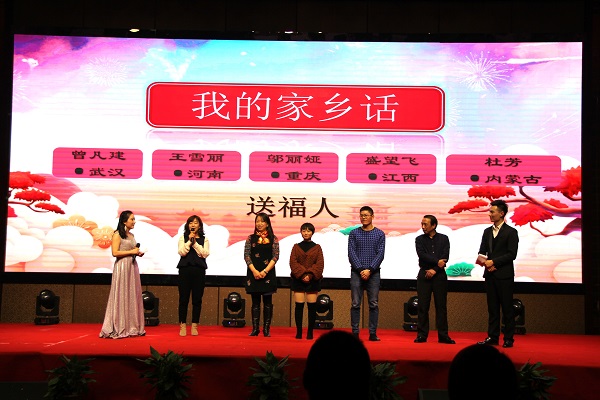 四方大家庭聚集了來自五湖四海的朋友們,家鄉(xiāng)話送祝福環(huán)節(jié),來自江西、內(nèi)蒙古、重慶等地的員工代表上臺(tái)為大家用家鄉(xiāng)話送上新春祝福,現(xiàn)場(chǎng)洋溢著一片喜氣洋洋的氛圍。