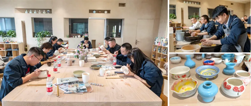 參觀結(jié)束后,管理團(tuán)隊(duì)在公司技術(shù)中心陶藝工作室體驗(yàn)了揉泥、拉坯、畫胚等傳統(tǒng)制陶工序,親手制作陶器,切身感受中國陶瓷文化魅力。