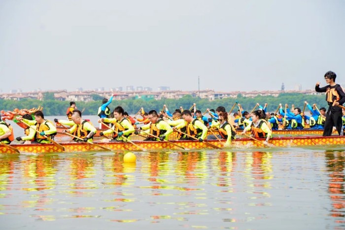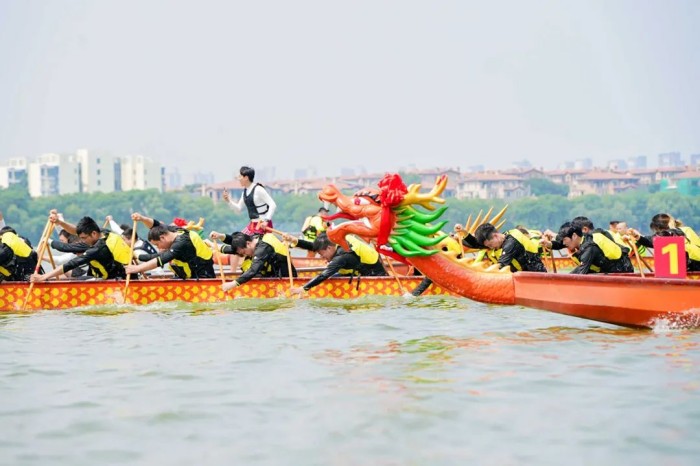 本次比賽采用300米直道競速賽制,湖經(jīng)四方共建龍舟隊、四方光電龍舟隊、三期“頭雁”學員龍舟隊、武漢市高新技術產(chǎn)業(yè)協(xié)會龍舟隊、長盈通龍舟隊、中步擎天和普迪真空龍舟隊、利楚商服龍舟隊、中科創(chuàng)新龍舟隊8支隊伍在碧波蕩漾的楊橋湖上展開激烈爭奪。
