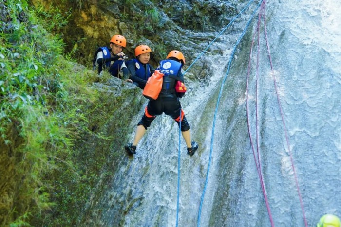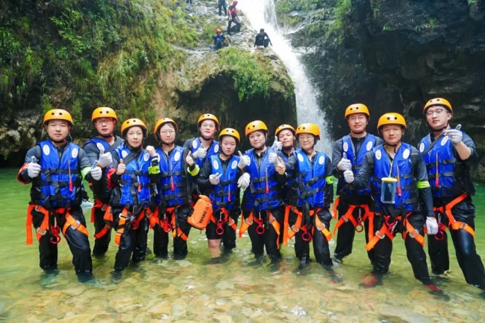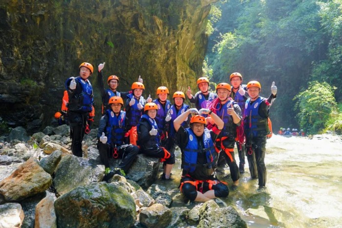 完成第一天的耐力歷練,8月23日,參訓(xùn)隊伍迎來了勇氣考驗。在峽谷的激流之中,隊員們首先完成近4公里溯溪,緊接著是更具難度的10米、40米雙重瀑降,最后是5米深潭的勇敢一躍。面對“極限挑戰(zhàn)”,所有的隊員心系團(tuán)隊榮譽(yù),勇敢突破自我,圓滿完成各項任務(wù),用實際行動詮釋了營銷團(tuán)隊強(qiáng)大的戰(zhàn)斗力、高效的執(zhí)行力和堅韌的凝聚力。當(dāng)晚,各支隊伍總結(jié)復(fù)盤評選勇于突破自我的“最佳戰(zhàn)神”,并精心準(zhǔn)備奉獻(xiàn)了充滿歡聲笑語的歌舞晚會。